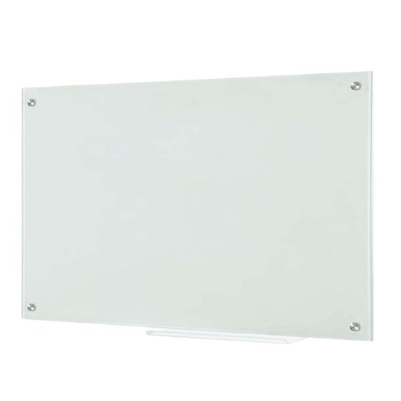 Superficie de vidrio templado. Para uso con plumones. Pizarrón fabricado en superficie de vidrio templado en tono claro de 6 mm de espesor con perforaciones de en cada esquina de 6 mm de diámetro para colocación a la pared con chapetones de acero inoxidable y protector plástico para soportar el pizarrón sin dañarlo. Incluye 4 chapetones (No incluye porta plumón).