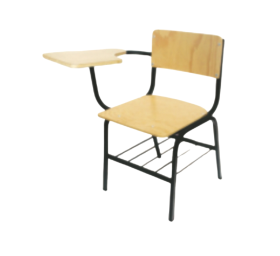Fabricado con estructura tubular de redondo de 1" con parrilla porta libros fabricada en tubular redondo macizo de 1/4". Asiento y respaldo fabricado en triplay de pino de 12 mm de espesor con paleta en triplay de pino natural de 18 mm de espesor barnizado.